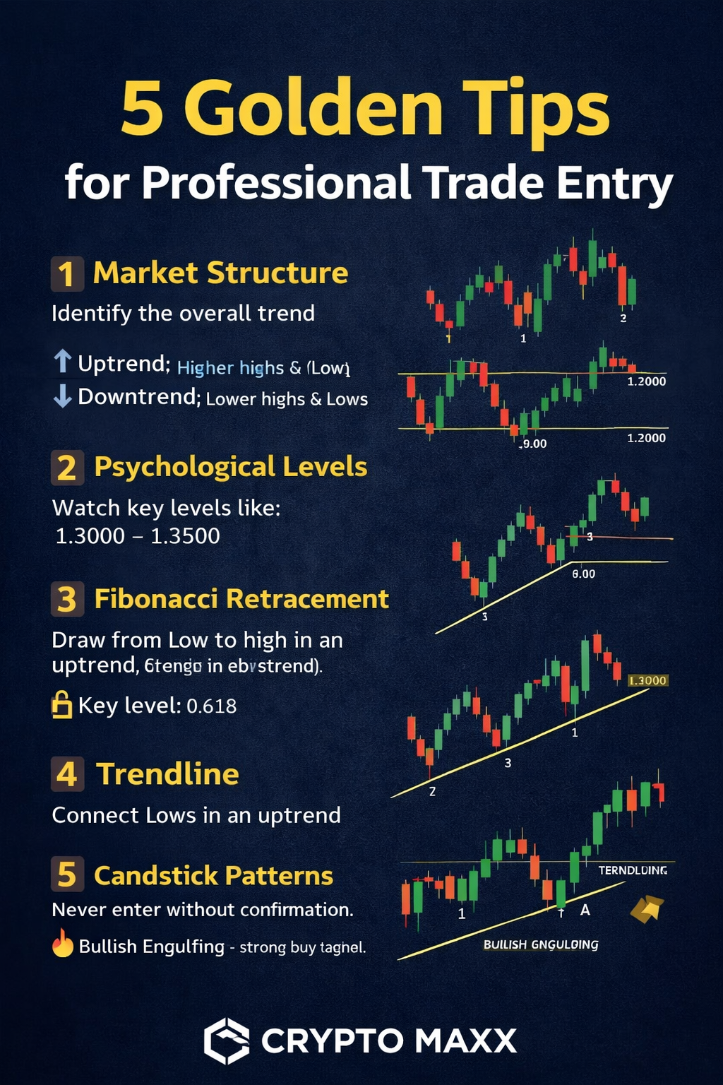 📌 عند اجتماع العوامل (الاتجاه + مستوى نفسي + فيبوناتشي + ترند + شموع)
