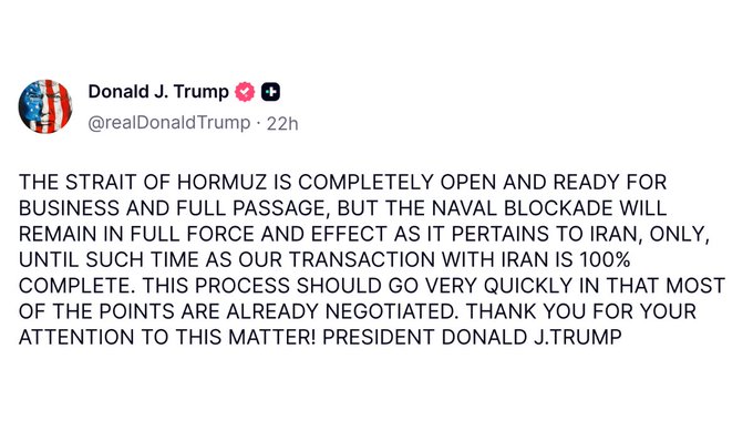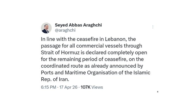 فبعد إعلان إيران في وقت سابق فتح الممر الملاحي بالكامل، وهو ما أشار إليه دونالد ترامب، عادت طهران لتعلن إغلاق المضيق مجددًا تحت سيطرة عسكرية مشددة، في خطوة تعكس تدهورًا سريعًا في مسار التهدئة.